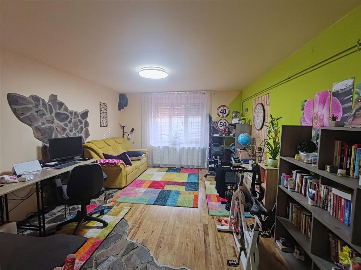 Nappali burkolata új laminált padló, tömör fa nyílászáró.