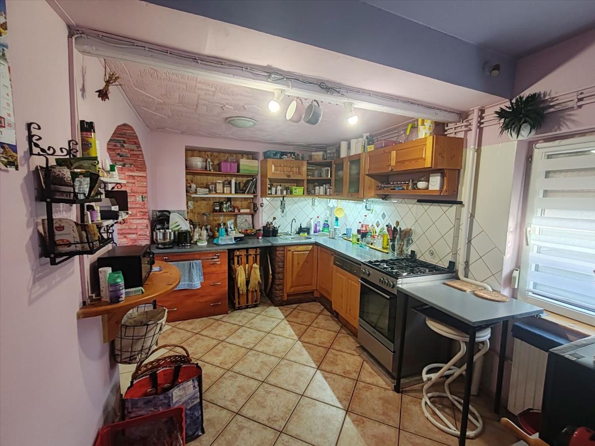 A konyha burkolata új kerámia járólap, új beépített konyha szekrény valamint új műanyag nyílászáró található.