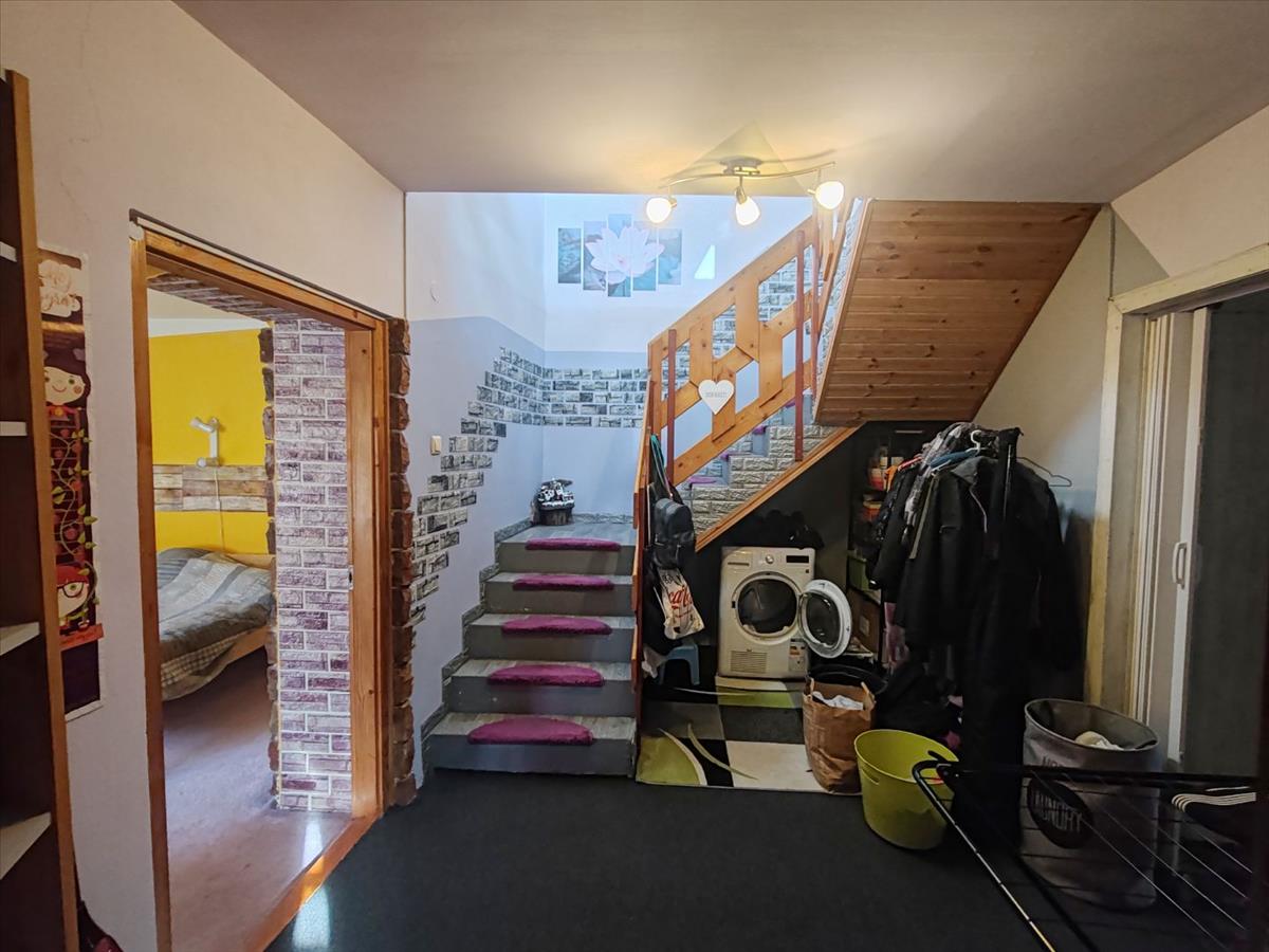 Közlekedő burkolta új laminált padló és itt található a lépcső az emeletre.