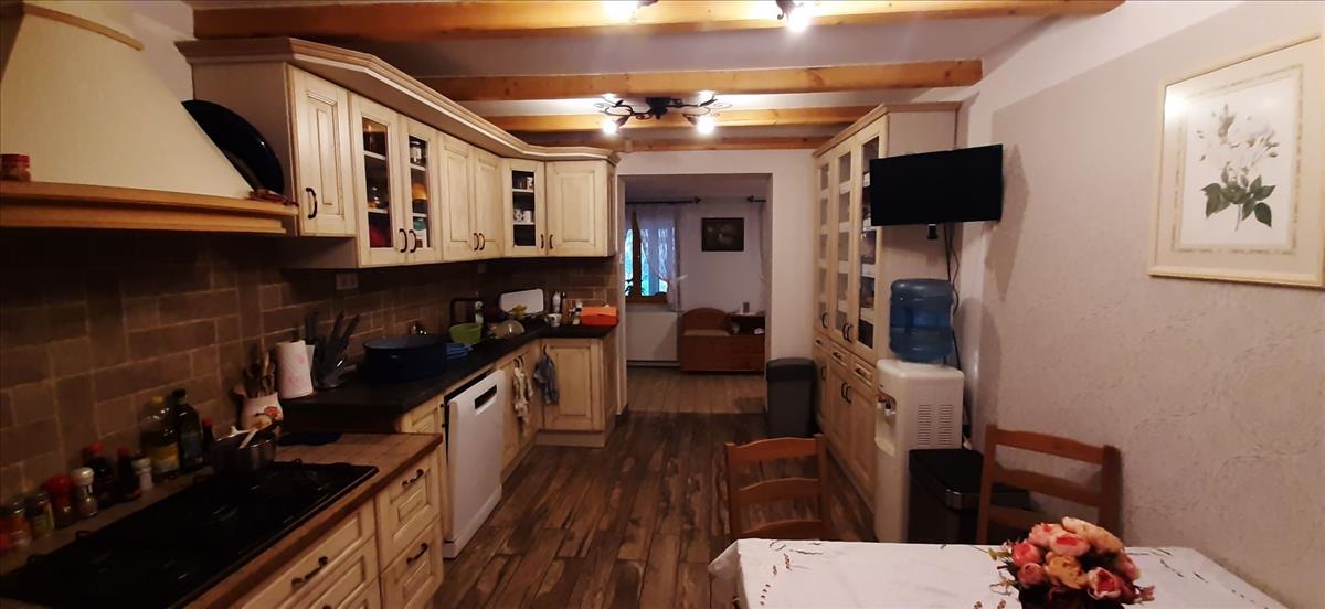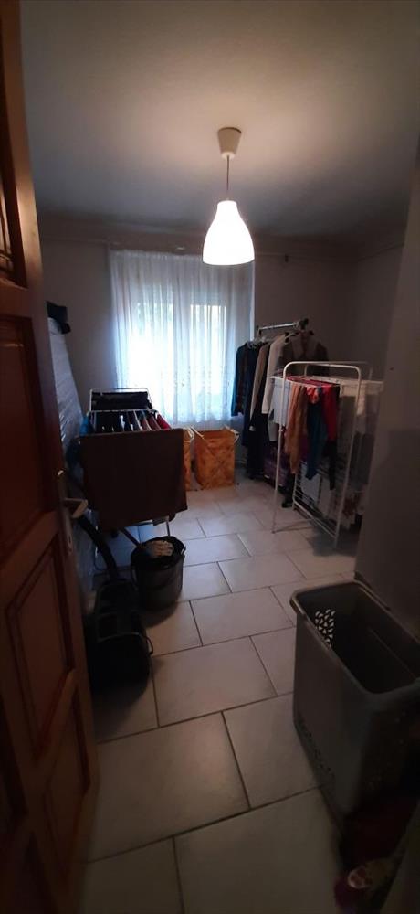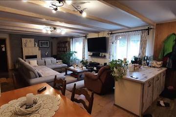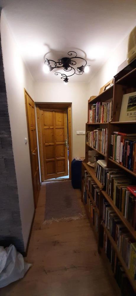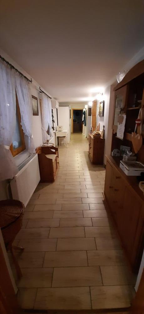 Előszoba-nappali burkolata új laminált lap található benne egy épített cserépkályha, klimatizált, innen nyílik az előszoba, 2 közlekedő, dolgozó szoba, gardrób, mosókonyha. Fürdőszoba-WC.