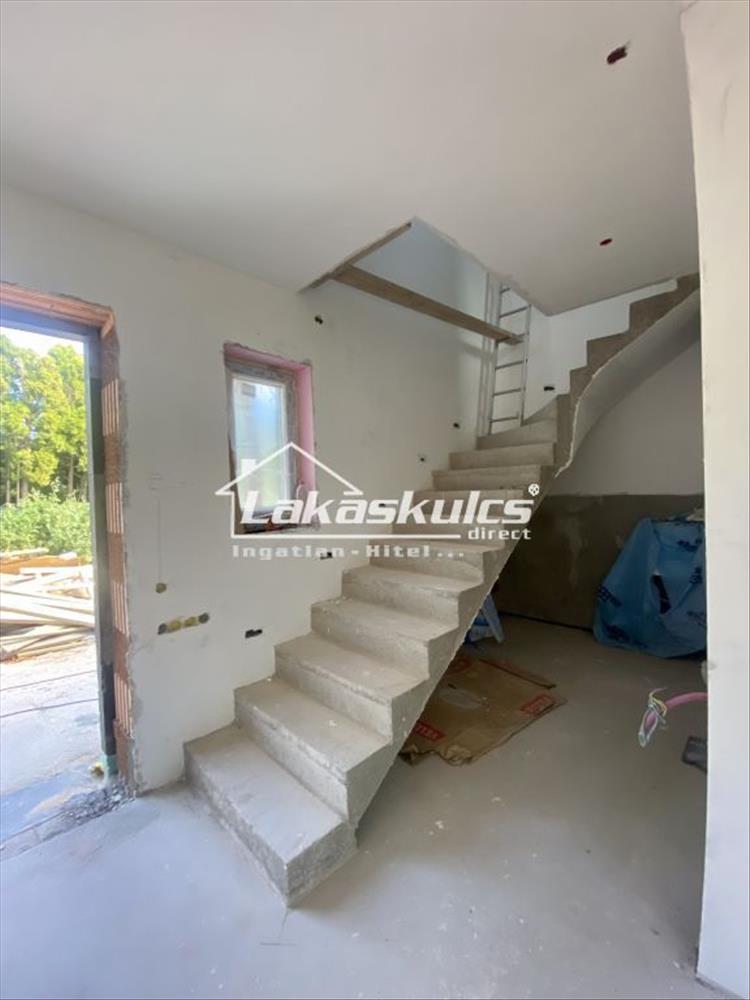 Földszint: netto 76, 21 m2, amiben nagy 43 m2 -es amerikai konyhás nappali kapott helyet, melyből igény esetén még egy kényelmes 10-12 m2-es hálószoba is leválasztható, további helyiségek: előtér + belső lépcső, külön wc, fürdő, közlekedő és egy kényelmes háló.