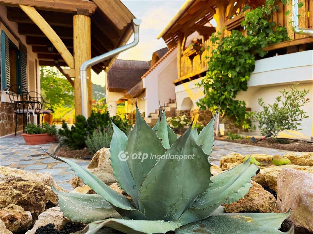 -balatoni panorámás, 45 m2-es tömörfa terasz, alatta kb. 40 m2-es pince