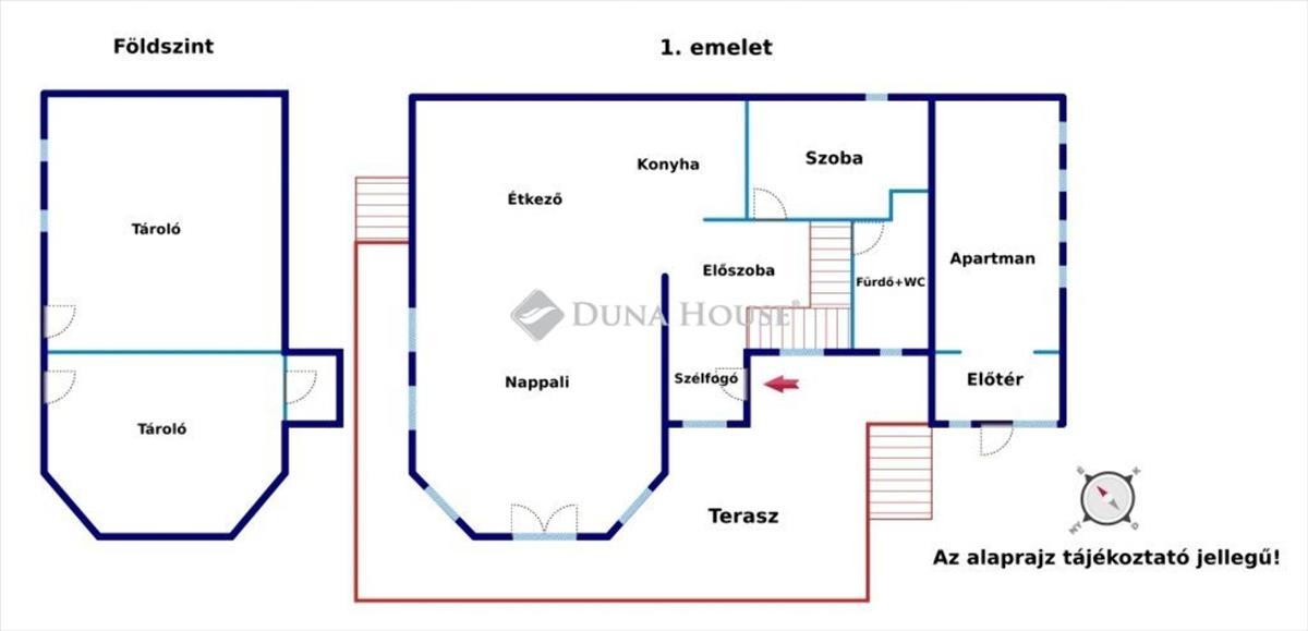 A ház 3 szintes, földszint, emelet, tetőtér felosztású.