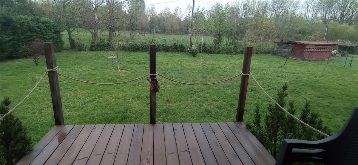 A telek díszfákkal ölelt, és egy termő cseresznyefa is helyet kapott – árnyékában tényleg megáll az idő.