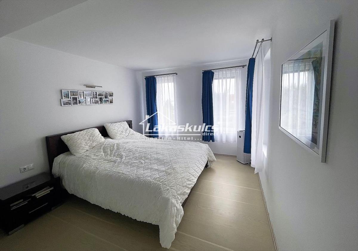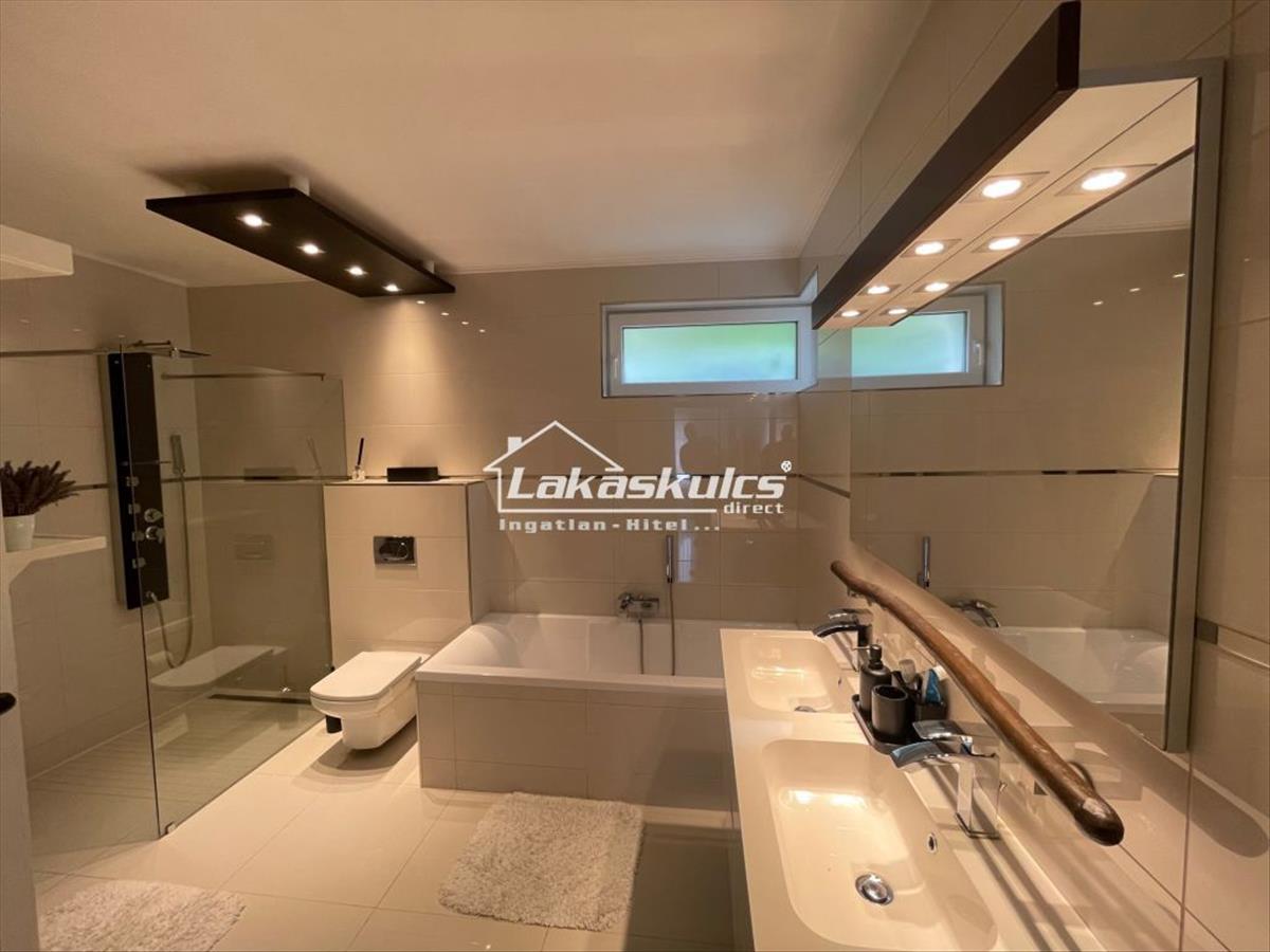A földszinten helyezkednek el a hálószobák, óriási fürdőszoba infraszaunával, valamint egy külön bejárattal ellátott, kertkapcsolattal, saját fürdővel rendelkező lakrész.
