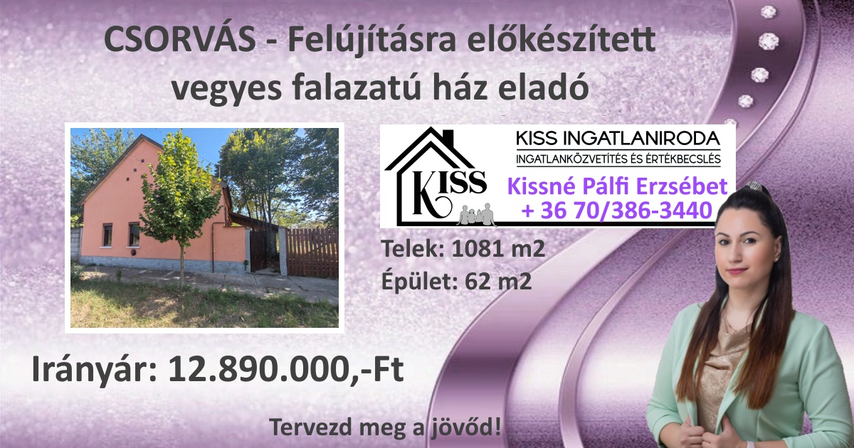 #ingatlanhirdetés #ingatlaneladás #ingatlan #ingatlanos #értékbecslés #értékbecslő #békésmegye #csorvás #békéscsaba #eladóház #eladóingatlan #ingatlanvideó #ingatlanértékesítés #ingatlanközvetítő #ingatlanközvetíétés #újotthon #felújítás #vidék FIX 3% lakáshitelre megvehető