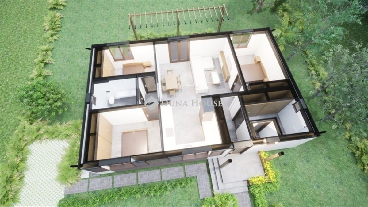 Dabas Dabasiszőlők részén, nyugodt környezetben kínálunk 83 m2 hasznos alapterületű új építésű ingatlant nagyon kedvező áron! Az ingatlan 720 m2-es telekre épül, melyet a kivitelező tereprendezés után, lekerítve ad birtokba. Egy kisebb előterasz és egy tágas pihenőterasz is kialakításra kerül. a lakás helyiségeit alább részletezem:Előtér: 4. 2 m2Konyha-étkező: 13. 9 m2Nappali: 17. 7 m2Szoba 1: 9. 3 m2Szoba 2: 10. 3 m2Szoba 3: 12. 2 m2Fürdőszoba: 5. 2 m2WC: 1. 3 m2Tároló: 7. 0 m2Közlekedő : 2. 2 m2Előterasz: 3. 9 m2Terasz: 17. 3 m2A könnyűszerkezetes házak az építkezés jövője. Álmodja meg velünk prémium minőségben kivitelezett otthonát, melyet rövid határidővel, teljes körű kivitelezéssel adunk át a szerződéskötéstől számított 5-7 hónapon belül! a teljes ház 90 cm mély sávalapra épül sip szerkezettel. Az építkezés megkezdése előtt van lehetőség a saját elképzeléseket is megvalósítva módosítani a terveken, az álomotthon vevői igények alapján személyre szabható és alakítható! Az otthonban a kellemes hőérzetet hőszivattyús fűtési rendszer és korszerű Fan-coil szellőztetés garantálják egész évben. a sip házak energetikailag prémium kategóriát képviselnek, melyet a 3 rétegű 7 kamrás nyílászárók és a 30 cm-es Isocell padlás szigetelés is fokoznak. Tőlünk vásárolt korszerű otthona garantáltan alacsony rezsivel fenntartható. a szigeteléshez, festéshez kizárólag magas minőségű anyagok kerülnek felhasználásra. a hideg és melegburkolatok 5000 Ft / m2, szaniterek 350000 Ft értékben igény szerint választhatóak. Kérésre extraként igényelhető Smart home rendszer, beépített konyhabútor, további kertrendezés, de akár napelem telepítését is vállaljuk megbízható, kiváló referenciákkal rendelkező partnereinkkel. Amennyiben felkeltettem érdeklődését keressen bizalommal további információért! Ingatlan eladás és vétel teljes körű ügyintézése, megbízható ügyvédi háttér biztosítása, ingyenes ingatlan tanácsadás, teljes körű és gyors bankfüggetlen hitelügyintézés, biztosítás, energetikai tanúsítvány akár hozott ingatlanra is az ország piacvezető ingatlanközvetítő hálózatának támogatásával!