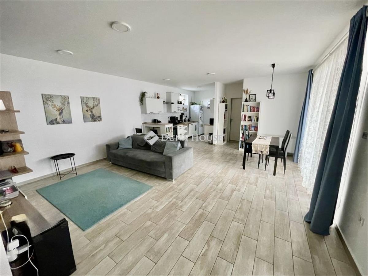 Eladásra kínálunk Dabas-Sáriban egy 91 m² lakóterületű + 18 m²-es garázzsal rendelkező, magas műszaki tartalommal megépített társasházi lakást (ikerházfél), amely egy 370 m²-es saját telekrészen fekszik. Az ingatlan ideális választás azoknak, akik a fenntartható, gázmentes otthont és a természet közelségét keresik. Műszaki tartalom Amiben ez a ház kiemelkedik:Az épület nem csupán esztétikus, hanem mérnöki precizitással, a hosszú távú takarékosság jegyében készült:Szerkezet: Leier 38-as tégla főfalak, 10 cm-es Graymix Graytherm hőszigeteléssel, belső Ytong válaszfalakkal. Fűtés és hűtés: Modern hőszivattyús rendszer (H-tarifával). Minden helyiségben padlófűtés, a kellemes hőmérsékletről pedig 3 db fan-coil gondoskodik, amely télen fűt, nyáron hűt. Garázs és Gépészet: a két lakást a garázs köti össze. a garázsban található a 300 literes hmv tartály, aminek köszönhetően a helyiség télen is tartja a 16-17 fokot. a kényelmet szigetelt elektromos garázskapu biztosítja. Tető és Szigetelés: Időtálló betoncserép fedés, a padláson pedig 2 rétegű kőzetgyapot szigetelés védi az otthont a hőveszteségtől. Extra felszereltség: * Napelem előkészítés (kiállások a tetőtérben). Elektromos redőnyök és rugós szúnyoghálók minden ablakon. Okos megoldások: Minden szobában mozgásérzékelő- és internet-kiállások. Biztonság: Szinte minden elektromos kör külön biztosítékkal ellátva. Világítás: Modern, energiatakarékos led rendszer az egész házban. Élettér és Kényelem:A tágas, világos nappaliból közvetlenül egy polikarbonát fedésű teraszra jutunk, amely tökéletes helyszín a családi kikapcsolódáshoz. a kert pont akkora (370 m²), ami még könnyen karbantartható, de elegendő teret ad a játéknak vagy kertészkedésnek. Lokáció Minden egy karnyújtásnyira:Közlekedés: 5 perc sétára buszmegálló Budapest és Kecskemét irányába. Ellátottság: Két kisbolt és egy óvoda is elérhető 5 perces sétával. Természet: Ha nyugalomra vágyik, a patak és az erdő szintén mindössze 5 perc gyalog. Környék: Gyermekes, biztonságos utca, ahol a csend és a nyugalom garantált. Az ingatlan gázmentes, jövőbiztos és azonnal költözhető állapotban várja új tulajdonosát! FIX 3% lakáshitelre megvehető