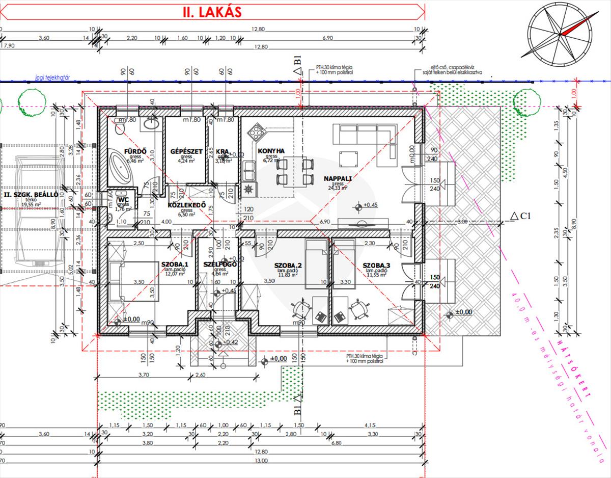 A két ingatlan nem érintkezik egymással, mivel csak a garázsok kötik őket össze! Külön helyrajzi számmal rendelkeznek, csak a kapubeálló lesz osztatlan közös tulajdon!