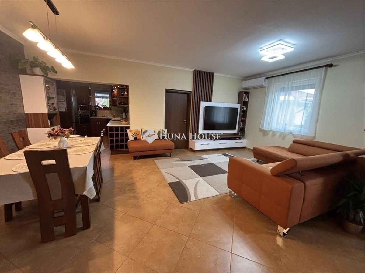 Prémium családi otthon eladó Dabason kifinomult elegancia, kompromisszumok nélkül. Az otthon három külön nyíló hálószobával és világos tágas nappalival rendelkezik. Dabas egyik kedvelt, központ közeli utcájában, kínáljuk megvételre ezt a különleges hangulatú, magas műszaki és esztétikai színvonalon megépített családi házat, amely éveken át egy szeretettel gondozott családi otthonként szolgált. a 2010-ben épült ingatlan 30-as Porotherm téglából készült, teljes fal- és tetőszigeteléssel, valamint prémium minőségű, többkamrás nyílászárókkal, szúnyoghálós redőnyökkel. Az átgondolt tervezés és a minőségi anyaghasználat a ház minden pontján érezhető. Tágas, harmonikus belső terek:Az amerikai konyhás nappali az otthon szíve, amelyhez három kényelmes hálószoba, kamra, fürdőszoba és külön wc kapcsolódik. Az elrendezés tökéletes egy modern család igényeihez. Egyedi belsőépítészeti megoldások: egyedileg tervezett, tömör fa beépített konyhabútor Bosch gépparkkal exkluzív, egyedi gyártású nappali bútor led hangulatvilágítással méretre készült beépített bútorok a szülői hálószobában és gyerekszobában elegáns előszobabútor prémium padlóburkolatok hangszigetelt beltéri ajtók automata küszöbbel a maximális komfortértModern gépészet, alacsony fenntartási költségek:A fűtésről Junkers kombi gázkazán gondoskodik, radiátoros és padlófűtéses hőleadással, míg a nyári komfortot egy 5, 2 kW-os Sinclair klímaberendezés biztosítja. a rezsiköltségek kedvezőek, a ház energiatakarékosan üzemeltethető. Kültéri élettér ahol a minőség folytatódik:A 35 m²-es, fedett terasz északkeleti tájolásának köszönhetően a nyári hónapokban is hűs, pihentető környezetet kínál. Az udvar kényelmét elektromos kapu, valamint egy 45 m²-es, egyedileg tervezett, könnyűszerkezetes dupla garázs biztosítja elektromos Hörmann kapuval. a gondosan kialakított kert: automata öntözőrendszerrel ellátott előkert parkosított, füves hátsó kert fákkal, tujákkal és gyermek játszótérrel 4 körös, esőérzékelős öntözés fúrt kútról gyümölcsfák, fenyők és egy 9 m²-es fa kerti házElhelyezkedés nyugalom a központ szívében:Óvoda, iskola, buszmegálló és üzletek 10 percen belül gyalogosan elérhetők, így a mindennapok kényelme maximálisan biztosított. Ez az ingatlan nem csupán egy ház hanem egy gondosan megalkotott élettér azok számára, akik értékelik az igényességet, a minőséget és az időtálló eleganciát. Ha megtetszett Önnek az ingatlan, kérem hívjon bizalommal akár hétvégén is. 12 Éves szakmai tapasztalattal igyekszem segíteni Önöknek. Az új Otthonuk megtalálásában és megvásárlásában.