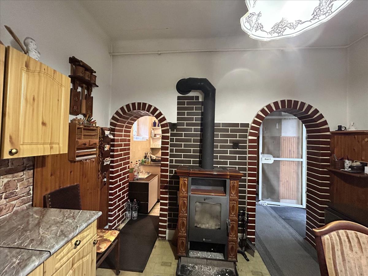 Összközműves, dupla fűtésű mód: gázkonvektor és cserépkandalló. Ez utóbbi pillanatok alatt felmelegít az egész házban, a konvektor csak rásegít.