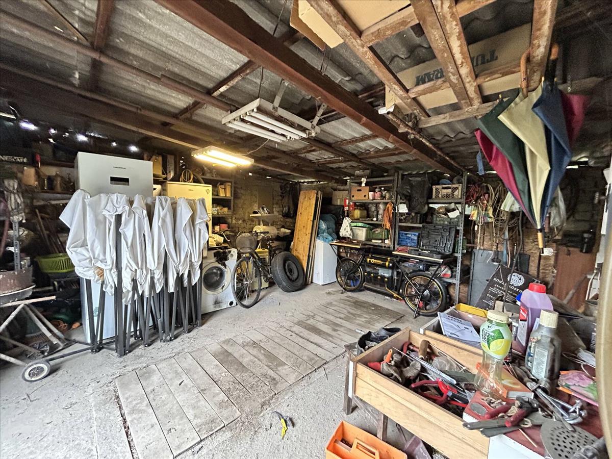 Melléképületek: 30 nm -es fedett, szerelőaknás garázs; plusz fészer, ahol állattartás lehetséges.