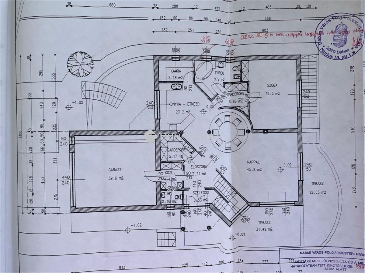 Dabason eladóvá vált egy kivételes adottságokkal rendelkező, igényes kialakítású, tágas, világos 3 szintes, több generáció együttélésére és emellett sokféle vállalkozásra alkalmas, központhoz közeli családi ház. DABAS városa – szinte az ország közepén - Budapest határától csak egy kőhajításra, mindössze 30 km-re található, jól fejlődő, az agglomerációba tartozó nyugodt, biztonságos kisváros mely az m5 autópályán és az 50-es úton is könnyen megközelíthető. a 1996-ban épült, de 2020-ban teljes-körűen felújított ingatlan három szinten összesen 290m² lakóterületet, 200 nm üzleti-vállalkozói részt, dupla garázst, nagy teraszokat kínál. a ház műszaki állapota a folyamatos karbantartásnak köszönhetően: kiváló. Ha Ön szeretne egy ilyen ingatlan tulajdonosa lenni, akkor jöjjön és nézze meg, szeressen bele, és vásárolja meg ezt a házat - remek ár-érték arányos összegért. a ház a valóságban is a fotókon látható tervek alapján készült el. Földszint: össz: 165 nm - tágas, napfényes, 3 oldalról fényt kapó 46 nm -es nappali-étkező, konyha, , spájz, hálószoba, gardróbok, 50 nm -es nagyrészt fedett terasz, fűthető dupla garázs: 40 nm Emelet: 124 nm , 3 külön-nyíló szoba, 1 nagyobb és 1 kisebb terasz, hall, tágas fürdőszoba, nagy gardróbhelyiség. Alsó szint – össz. : 218 Nm. Üzleti rész 82 +43 nm + szociális helyiségek, vendég-vécé, öltöző, fürdőszoba, konyha-étkező, tárolók, gépészeti helyiség, tárolók, raktárak. a ház teljes alapterülete 3 szinten: 547 nm + a teraszok: 76 nm Szobák száma: 5 Szerkezet: YtongTégla, Porotherm tégla Tájolás: K-D-Ny Felújítás éve: 2020- új konyha, hatalmas gardrób-szekrény, új kapuk, kerítés, klímák, burkolatok, stb Fűtés: 3 lehetőség: Vailant gázkazán, Vegyes tüzelésű kazán, új hűtő-fűtő klímák, alsó szinten radiátor, lakószinteken padlófűtés. Meleg-víz: Villanybojler és gázfűtésű 200 l-es puffertartály Nyílászárók: Egyedi gyártású, kiváló minőségű, kitűnő állapotú, hőszigetelt fa ablakok, elektromos redőnyökkel a földszinten. EXTRÁK: riasztó, központi porszívó, 2022-ben telepített 12 KW-os napelem-rendszer, elektromos autótöltés, egyedi gyártású, impozáns gránit és márvány burkolatok. Igényes, minimális gondozással járó japán stílusú zen kert, sziklákkal, gereblyézett kaviccsal, műfűvel, finom ízű füge-bokrok, sokféle gyógynövény, árnyas dió-fa - a kellemes közérzet érdekében. Hívjon, írjon bátran bővebb információ, megtekintés egyeztetése céljából. Hitel.hu - Hasonlítsa össze a bankok lakáshitel ajánlatait
