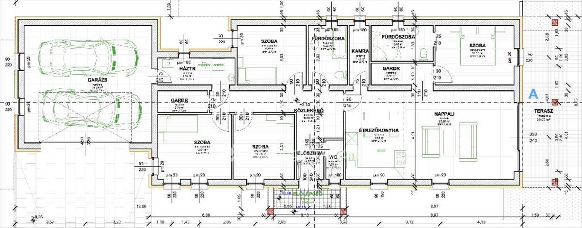 A belső elrendezés tágas és jól átgondolt: előszoba, nappali étkezővel és konyhával, kamra, háztartási helyiség, külön mellékhelyiség, két fürdőszoba, több hálószoba és gardrób helyiségek szolgálják a család kényelmét. a szülői háló saját gardróbbal és külön fürdőszobával kialakított, így valódi privát lakrészt biztosít. a nappali közvetlen terasz- és kertkapcsolattal rendelkezik, amely ideális választás családi és baráti összejövetelekhez.