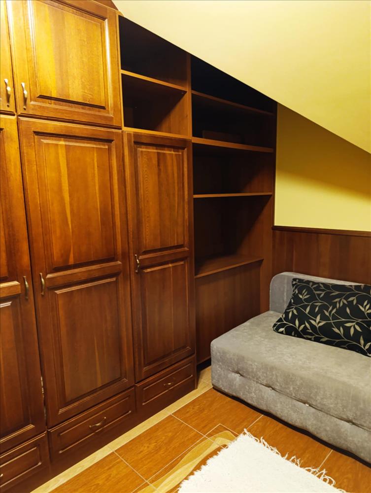 --Hátsó házrész: külön bejárattal - előszoba, 2 és fél szoba, gépesített konyha, fürdőszoba, wc. Kamra, tároló helyiségek, kazánház:97 m2.