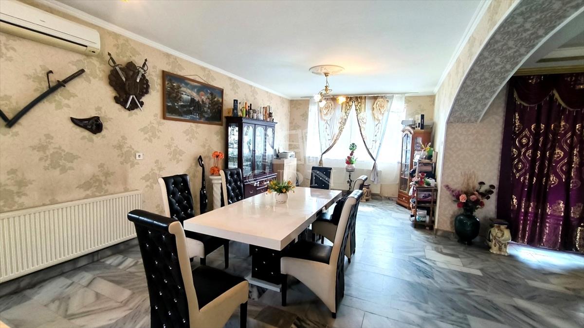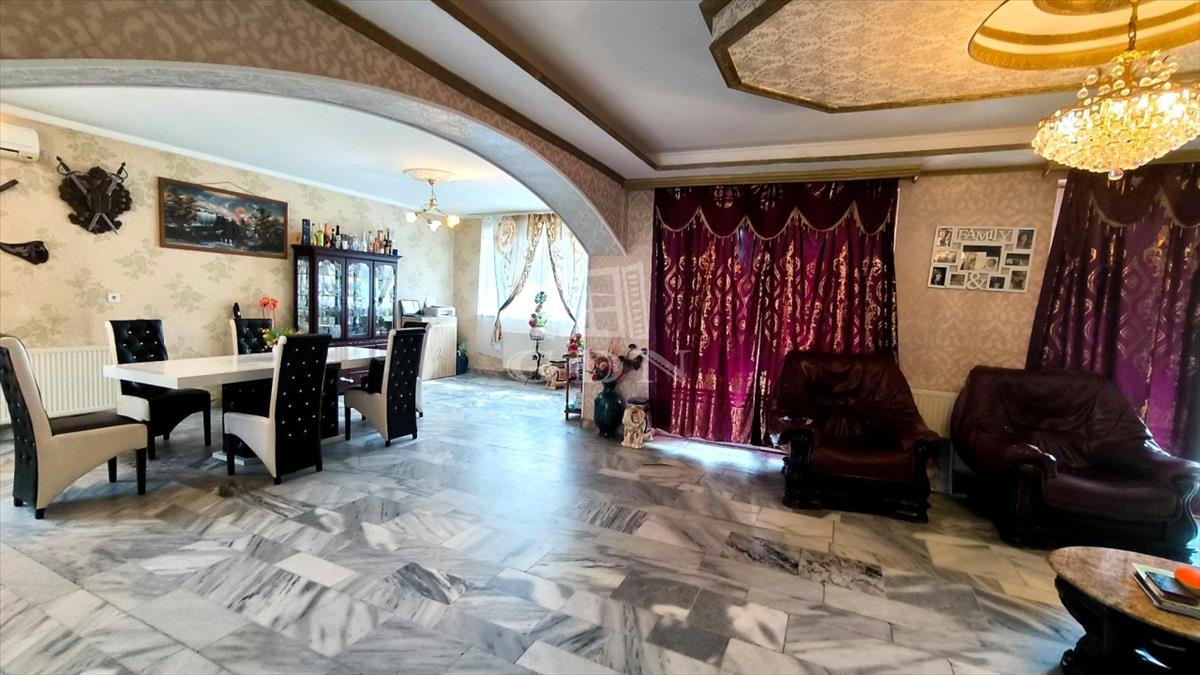 Eladó Dabas legszebb családiházas övezetében egy különleges, 250 m²-es, kétszintes családi ház hatalmas, 1530 m²-es rendezett telken, teljes közművel és melléképülettel. a földszinten egy impozáns, 60 m²-es amerikai konyhás nappali, két hálószoba, zuhanyzós fürdő és külön wc található, az emeleten pedig három további hálószoba és egy tágas, 12 m²-es fürdőszoba külön WC-vel. a 122 m²-es pince jelenleg edzőteremként működik, de bármilyen más funkcióra is ideális. a 91 m²-es melléképület kétállásos garázs, amely akár külön lakássá is átalakítható, így a ház többgenerációs együttélésre is tökéletes.