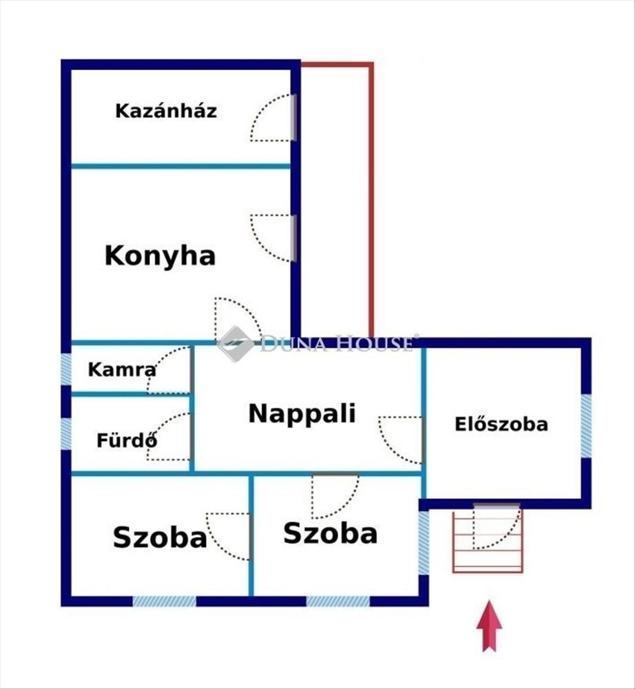 Kialakítása: nappali, 2 szoba, tágas előtér, fürdő+wc, kamra, konyha, kazánház.