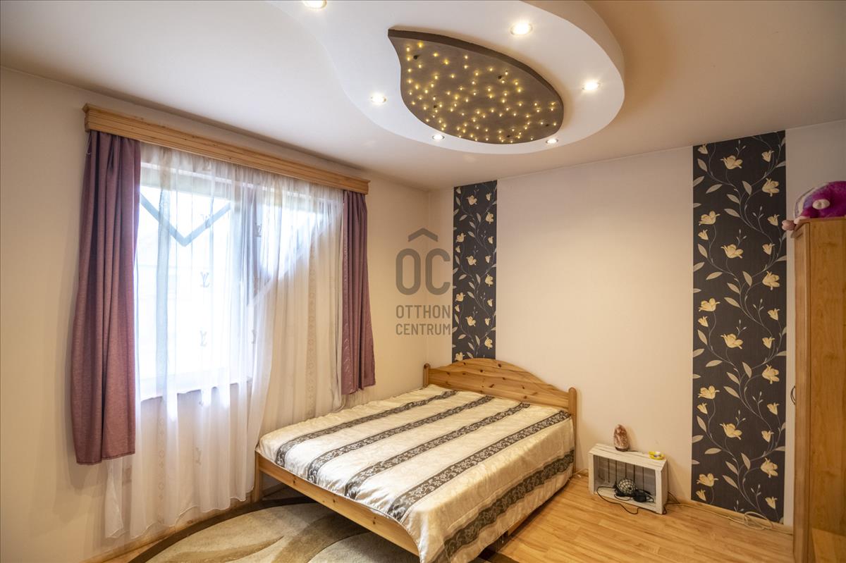 A nagyméretű nappaliban lévő fatüzelésű kandalló is található, így különleges atmoszférát teremt az ott élők, vagy az oda látogatók számára. a ház modern elrendezése mindenki számára önálló biztosít a különbejáratú szobák által. a nagy ablakok lehetővé teszik, hogy átjárja a fény az egész ingatlant. a konyha is szellős, akár a család apraja-nagyja az ételeket együtt is elkészítheti, mindenki kényelmesen elfér! Két terasz is kapcsolódik a házhoz, így kedvünk szerint választhatunk, hogy hol pihenjük ki a magunkat. Jöjjön és nézze meg!