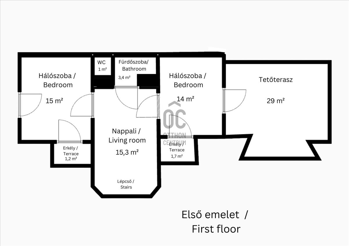 - Két hálószoba nyílik a fenti nappaliból