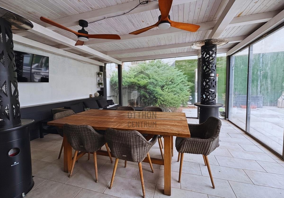 - Az egyik hálóból egy 29 m²-es, félig fedett panorámaterasz érhető el, amely teljesen intim, senki nem lát be, hangulatos, tágas és csodás kilátással rendelkezik. Ez a ház egyik legkülönlegesebb pontja.