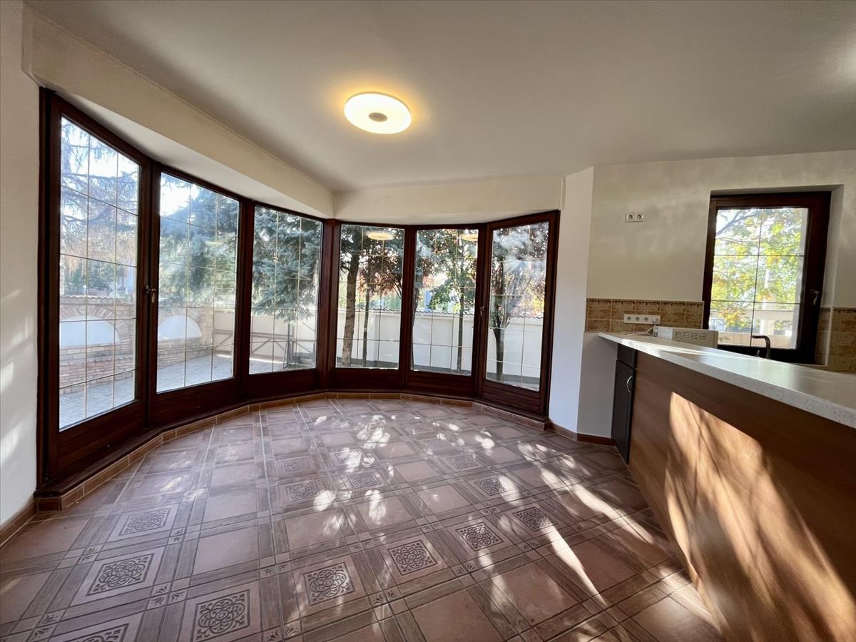 - földszinten: 33 nm -es nappali, 27 nm -es konyha-étkező, 23 nm -es terasz, egy 9 nm -es szoba, 11 nm -es szoba, és egy 13 nm -es szoba, 8 nm -es dolgozó, 8 nm -es fürdőszoba, 6 nm -es gardrób plusz wc, közlekedő, előtér helyezkedik el