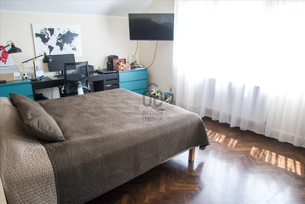 Debrecenben, a klasszikus Nagyerdőn, a Nagyerdei körútból nyíló csendes kis utcában, 276 nm -es (+ 42 nm -es dupla garázs) alapterületű, nappali + nagy konyha-étkezős + 4 nagy hálós + 2 fürdő + wc-s + a szuterén szinten külön fürdő és wc-s, a nyolcvanas években, 470 nm -es telken épült kétszintes (+a szuterén szint) gáz-cirkó fűtéses önálló családi ház eladó.