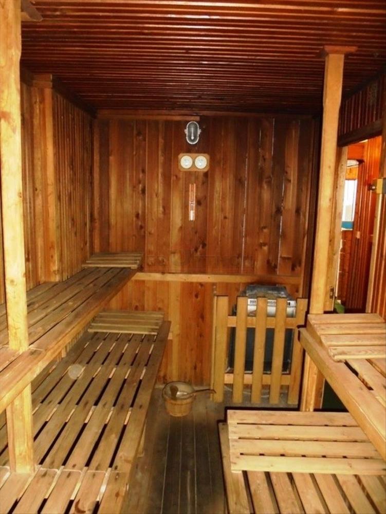 - a földszinten a két szgk. Elhelyezésére alkalmas, utcafrontról nyíló garázst finn szaunává alakították át, a mellette lévő helyiségbe merülőmedencét helyeztek el