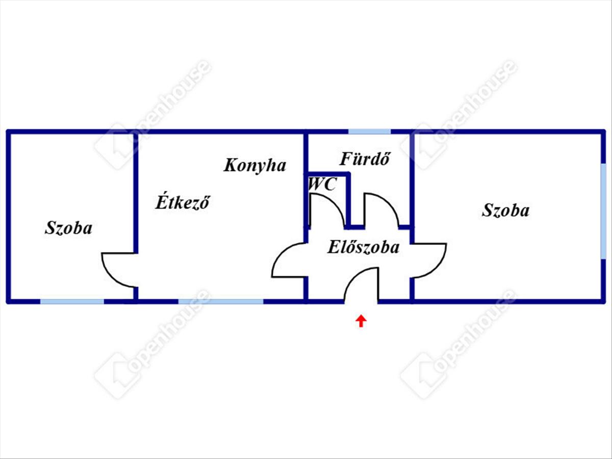 - a családi ház 56 m2-es, melyben található 2 szoba, egy étkezőkonyha, egy kádas kialakítású fürdőszoba, egy wc, és egy előszoba.