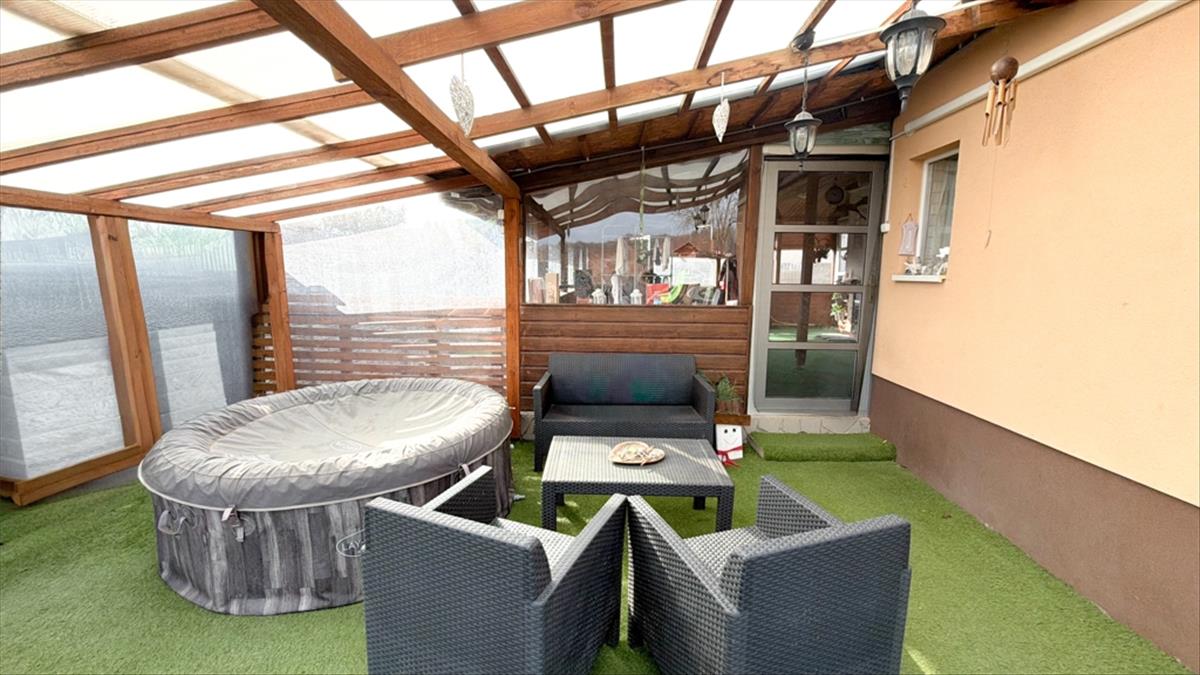 A ház egyik különlegessége a kb. 40 M²-es téliesített terasz, amely második nappaliként vagy hobbi térként funkcionál, igazi családi központ lehet.