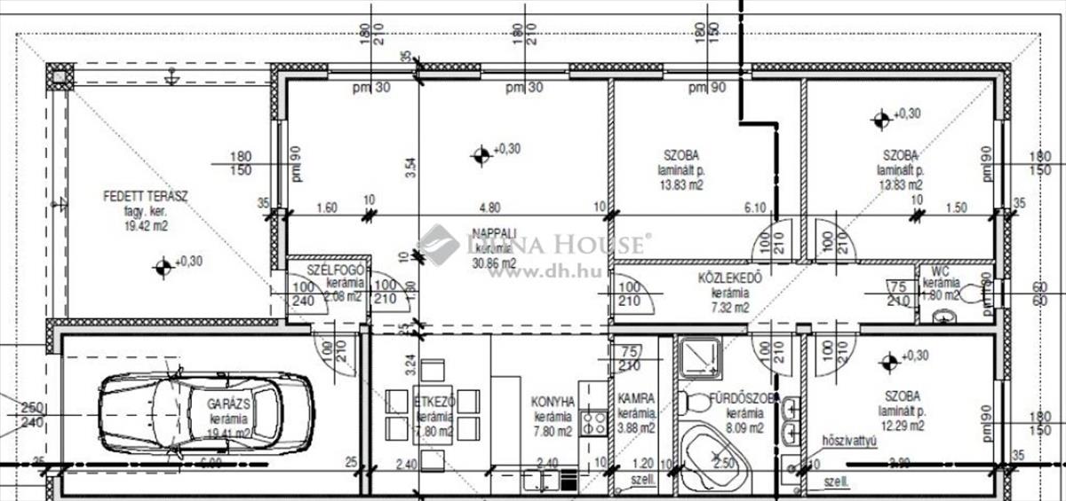 A fedett terasz: 19, 41 m2