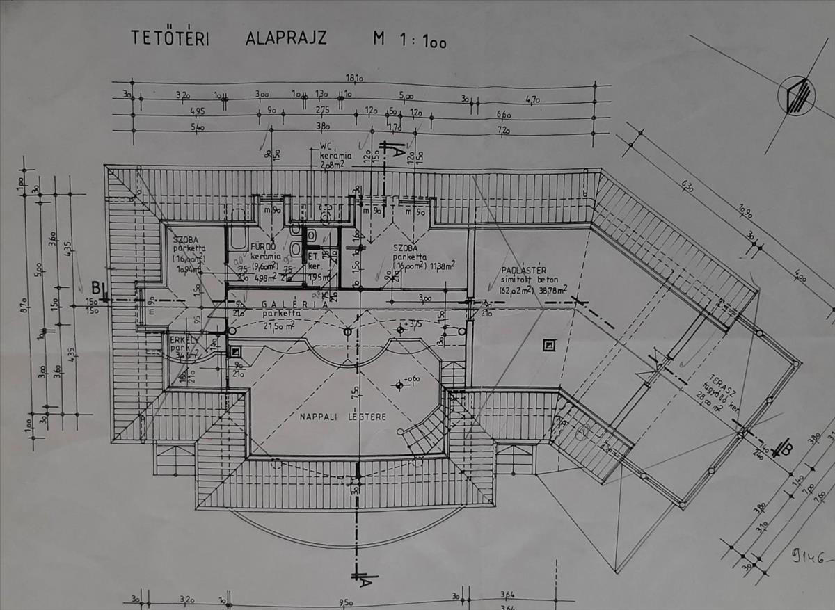 A galériás kialakítású ház 250 nm-en terül el, ahol a földszinten nappali, konyha, kamra, étkező és 2 hálószoba, fürdőszoba, 2 wc található, amely kiegészül egy tágas, 50 nm-es terasszal. a felső szinten galéria, 2 hálószoba, fürdőszoba, wc, valamint egy 70 nm-es, beépített tetőtéri szoba került kialakításra.