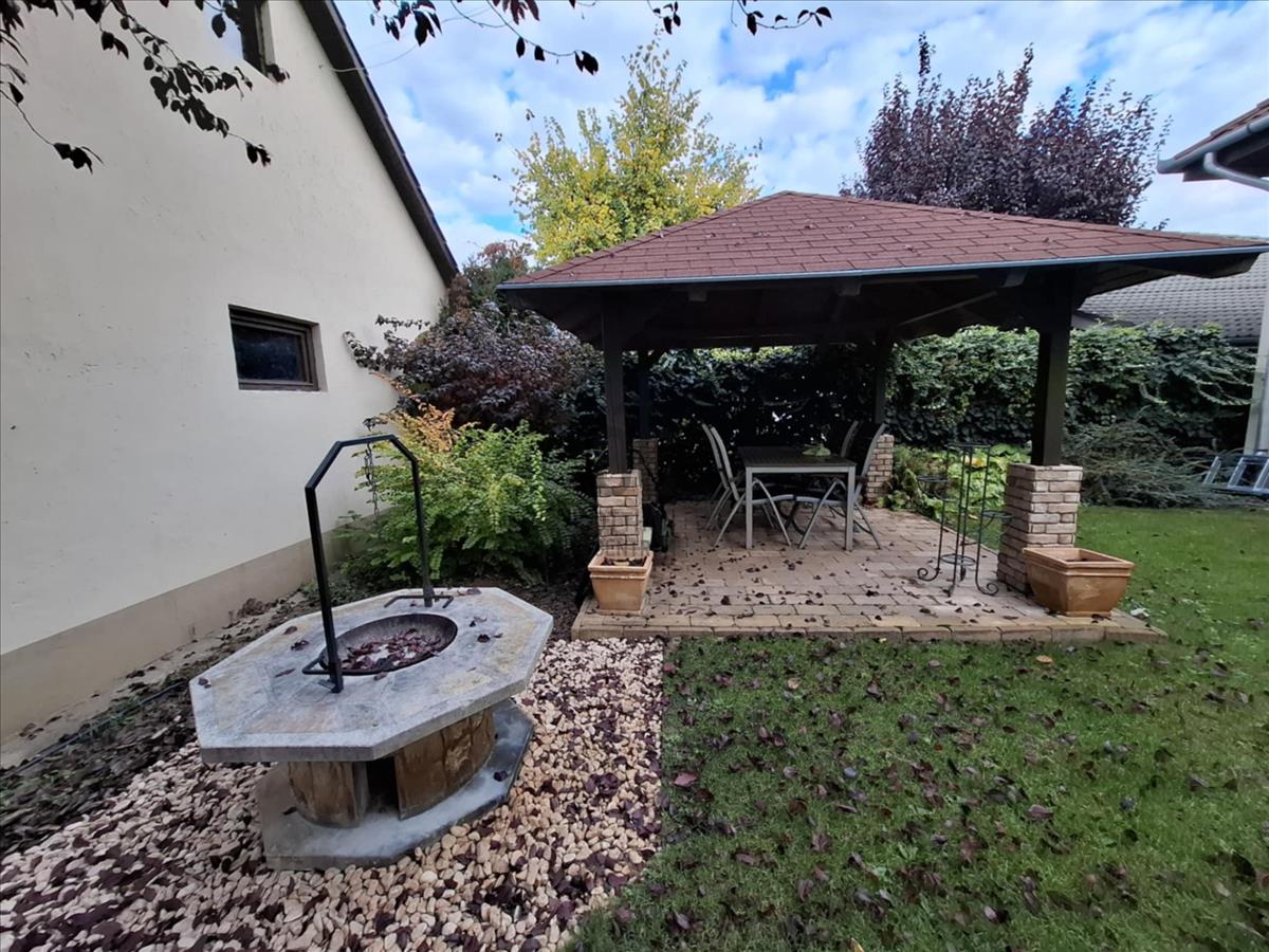 A családi házhoz tartozik egy nagyméretű, rendezett, parkosított kert. a kert végén helyezkedik el a szerelőaknás duplagarázs tárolóval, a kettő együtt összesen 44 nm nagyságú. a kertben helyet kapott egy filagória és egy sütőhely is.