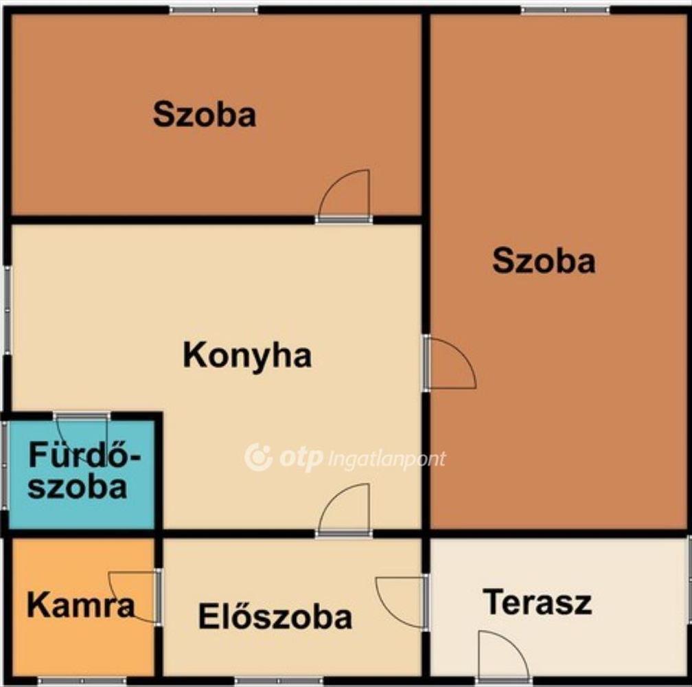 - helyiségei: 2 szoba, előszoba, konyha, fürdőszoba és kamra
