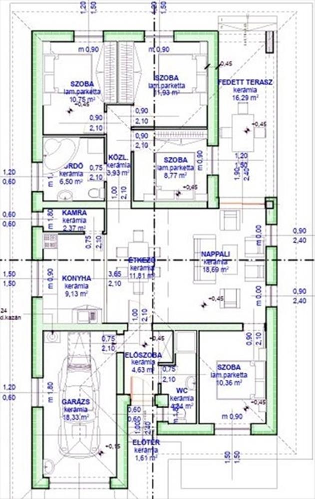 -Kialakításuk:amerikai konyhás nappali, kamra, 4 hálószoba, 2 fürdőszoba, fedett terasz, garázs.