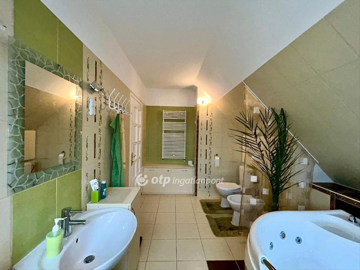 A felső szintre érve egy dolgozószobaként funkcionáló közlekedő tér fogadja az érkezőt. Innen nyílik 3 kényelmes, tágas szoba, valamint egy hidromasszázs káddal, Wc-vel és bidével ellátott fürdőszoba.