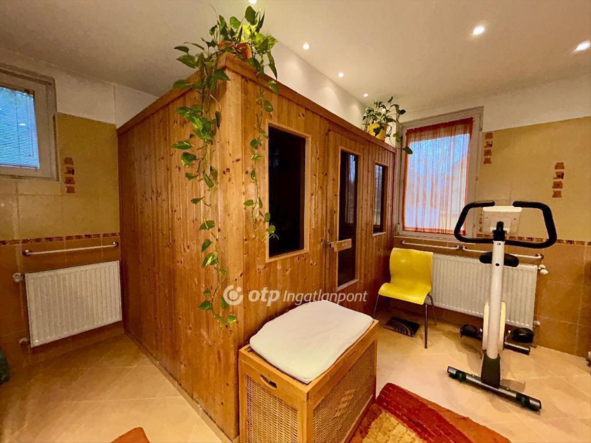 Beosztását tekintve, az előszobából a közlekedőn át juthatunk a tágas, napfényes és egymással egybenyitható gépesített étkező-konyhába és nappaliba. Itt, a földszinten helyezkedik el a szülői háló és egy zuhanykabinnal, valamint egy nagy méretű finn szaunával felszerelt fürdőszoba, külön Wc-vel.