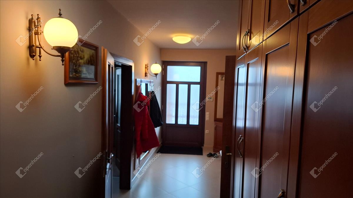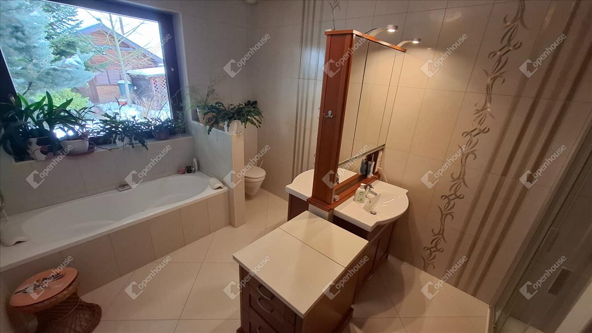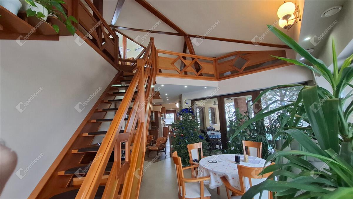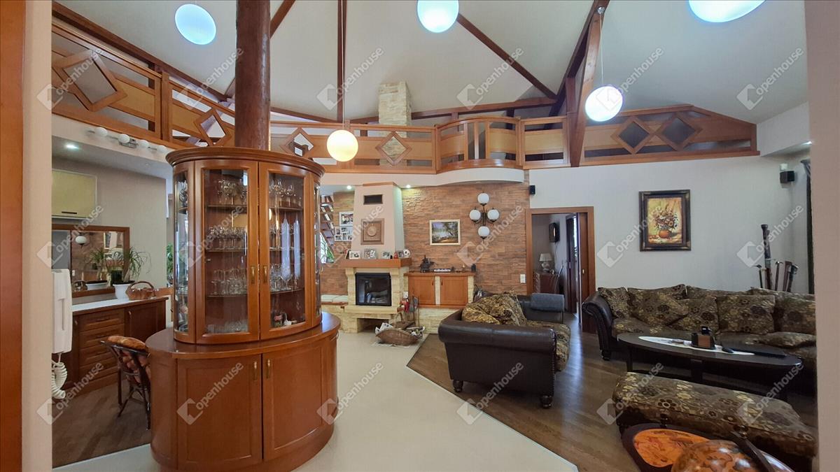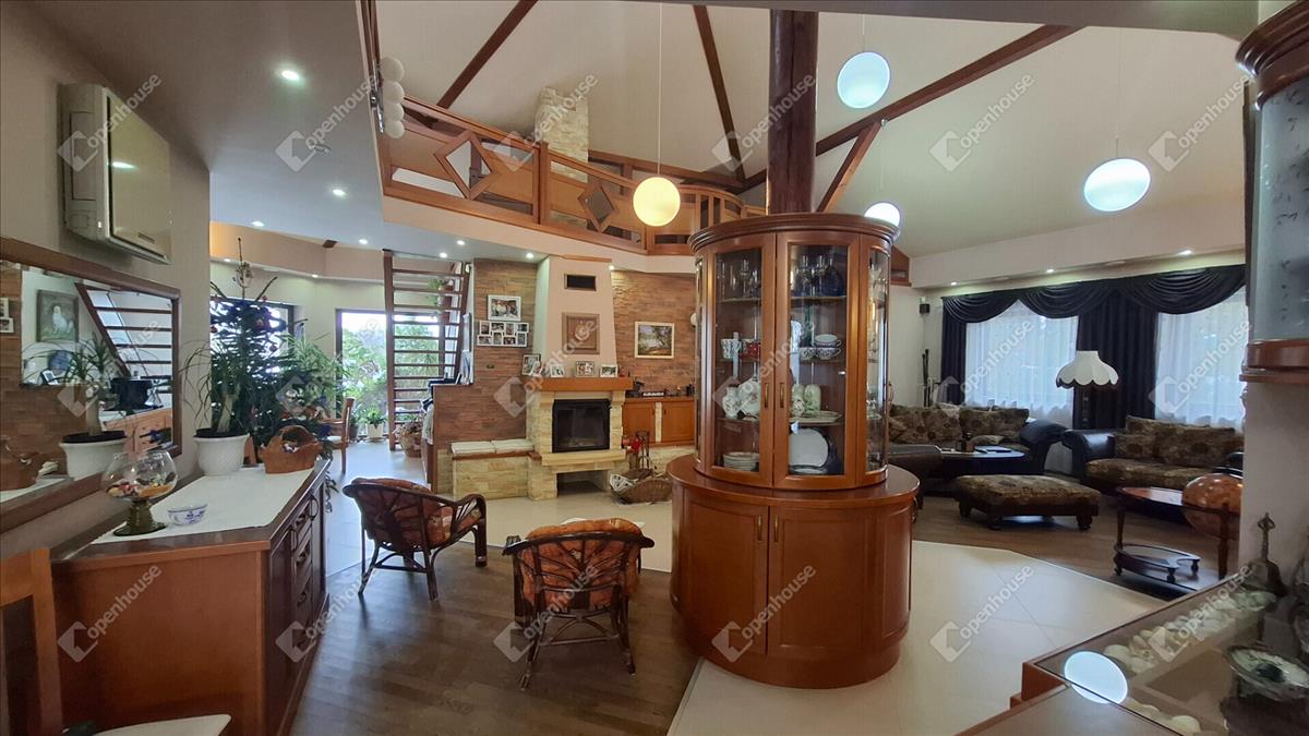 A családi ház felső szintje 170 négyzetméter, a fő nappali egy vizes grillezős kandallóval, egyterű konyha étkezővel, egy nagy terasszal, télikerttel. a nappaliból nyílik a fő hálószoba beépített gardróbbal, saját terasszal, fürdőszobával. a fürdőben két külön mosdóhely, fürdőkád, zuhanyzó, beépített szekrények, szennyes ledobó a lenti mosókonyhába.