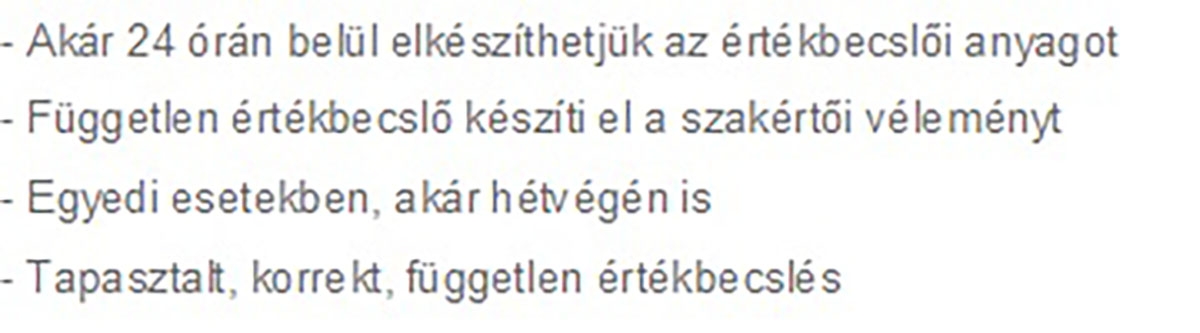 Elküldjük Önnek e-mailben, majd kinyomtatott, lefűzött formában postai úton a kész érték-becslői szakvéleményt