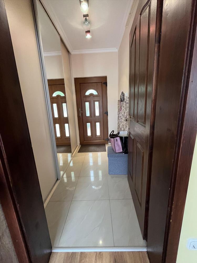 A ház praktikus elrendezésű: a tágas nappali, étkező és konyha egy légtérben helyezkedik el, amelyhez külön spájz is tartozik. Az ingatlanban 3 külön nyíló szoba található, így minden családtagnak biztosított a saját, nyugodt élettér.