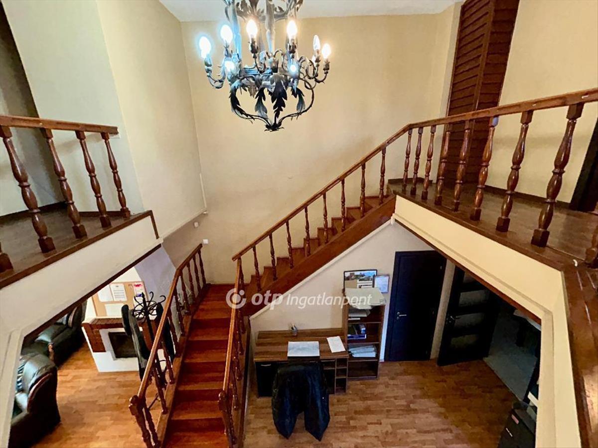 Az impozáns, belső fa lépcsősoron át megközelíthető a 101 mm2-es, galériás felső szint. Itt 4 szoba (20, 5 m2, 15, 4 m2, 13, 6 m2 és 19, 2 m2), közlekedő és 2 fürdőszoba található WC-kkel.