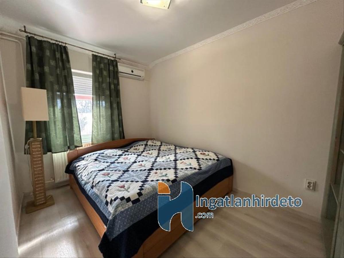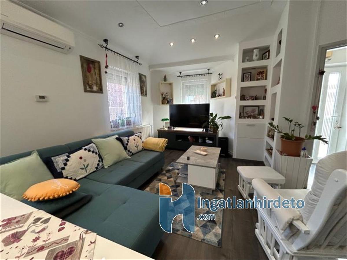 A ház elrendezése átgondolt és élhető: a világos nappali a lakás központja, amely kellemes életteret biztosít a mindennapokhoz, míg a két külön nyíló szoba nyugodt, privát pihenést tesz lehetővé. a gondosan kialakított, gépesített konyha praktikus spájzzal egészül ki, így nemcsak esztétikus, hanem kifejezetten jól használható is. a fürdőszoba és a mellékhelyiség külön került kialakításra, ami tovább növeli a komfortérzetet.