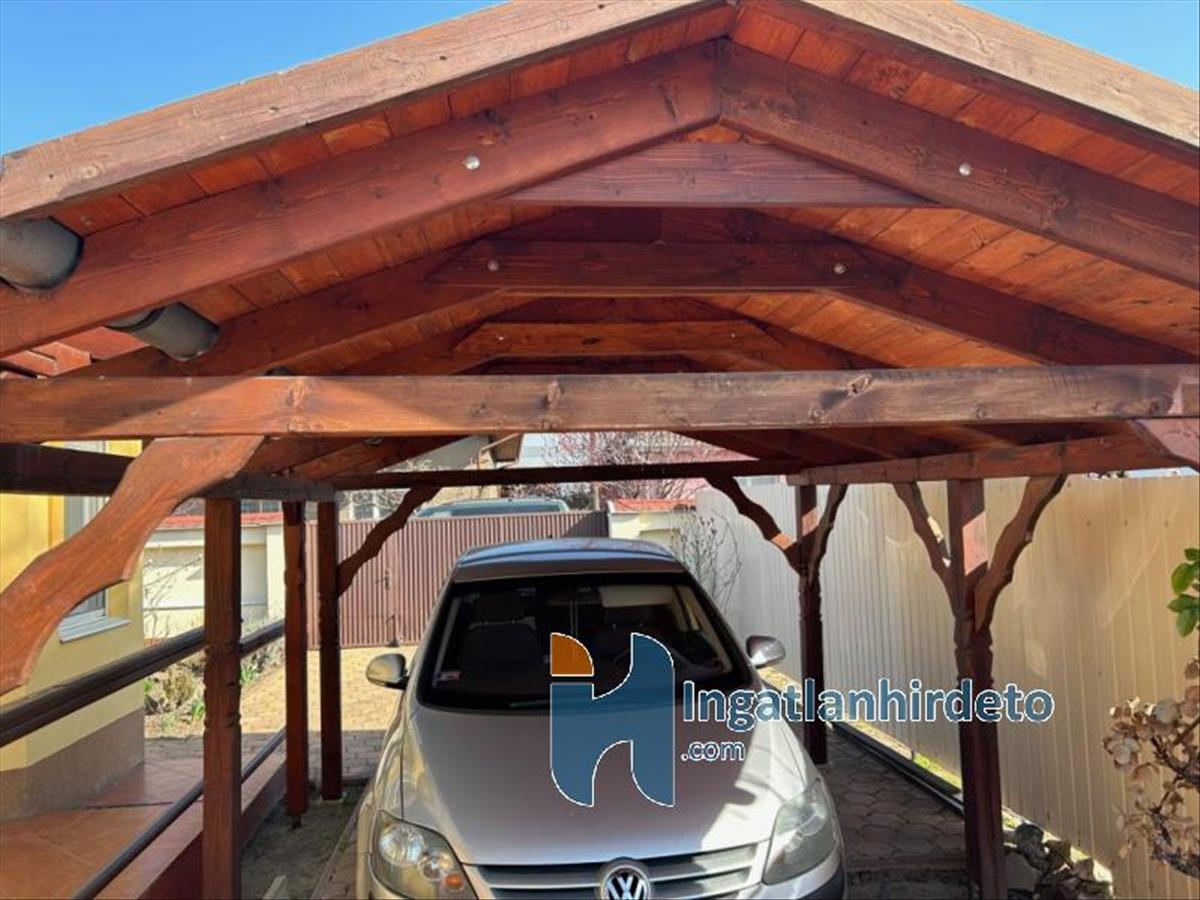 A házhoz tartozó kert rendezett és hangulatos, ideális helyszíne lehet a kikapcsolódásnak vagy akár családi, baráti összejöveteleknek. a fedett autóbeálló és a praktikus kerti faház tovább növeli az ingatlan használati értékét.