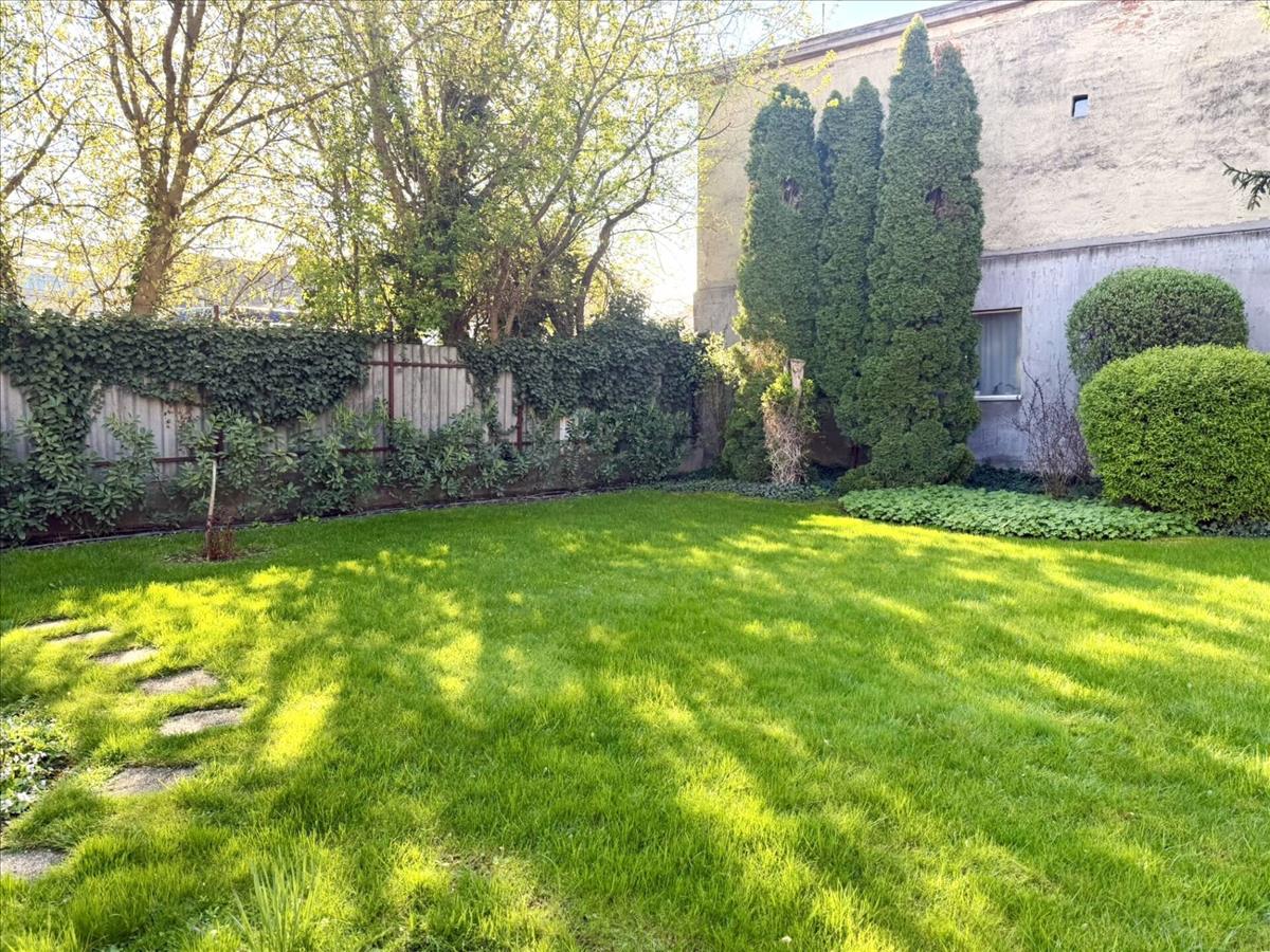 Az ingatlanhoz tartozó közel 800 m²-es telek igazi zöld oázis a belváros közepén: parkosított kert, különleges növények és automata locsolórendszer gondoskodik a mindig ápolt, esztétikus környezetről.