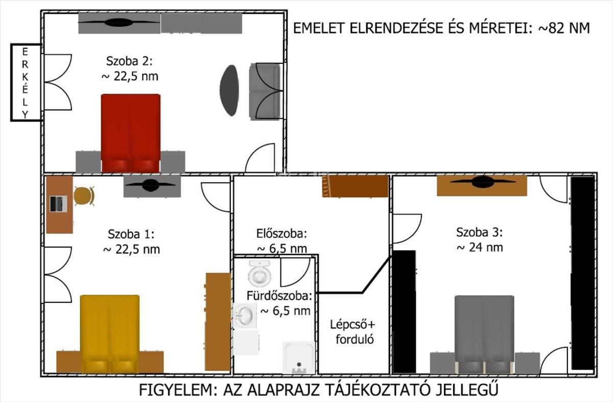 Az egész épületben nagy méretű és szép igényes szobák (sok beépített bútor, klíma, szép falak, nagy terek. . . . ) Jellemzik + több fürdő és wc is van számunkra. Hatalmas méretű ház, mely önmagában is több generáció számára alkalmas és még ott van mellette (egybeépítve) a második épület, ami még egy családnak elegendő.
