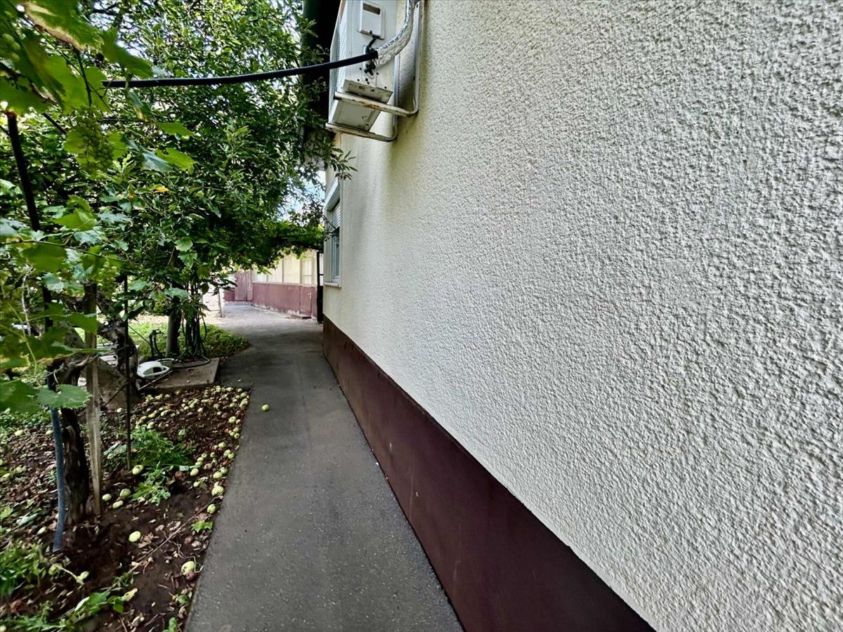 A telek hátsó részében gyümölcsfák találhatóak. Pár percre található bolt, buszmegálló.