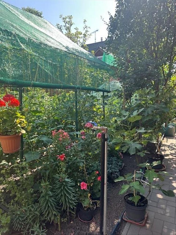 A házhoz tartozó telek mérete 305 m2, mely csodás édenkert, zöldségek, gyümölcsök teremnek benne.