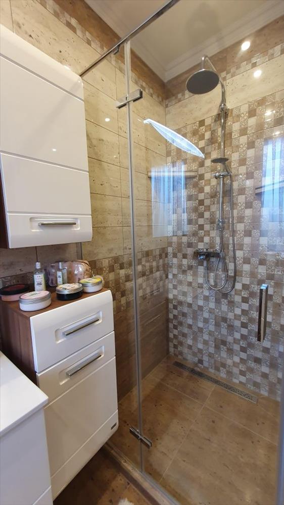 The harmony of tastefully selected tiles and wallpapers is mixed with pleasant classic furniture.