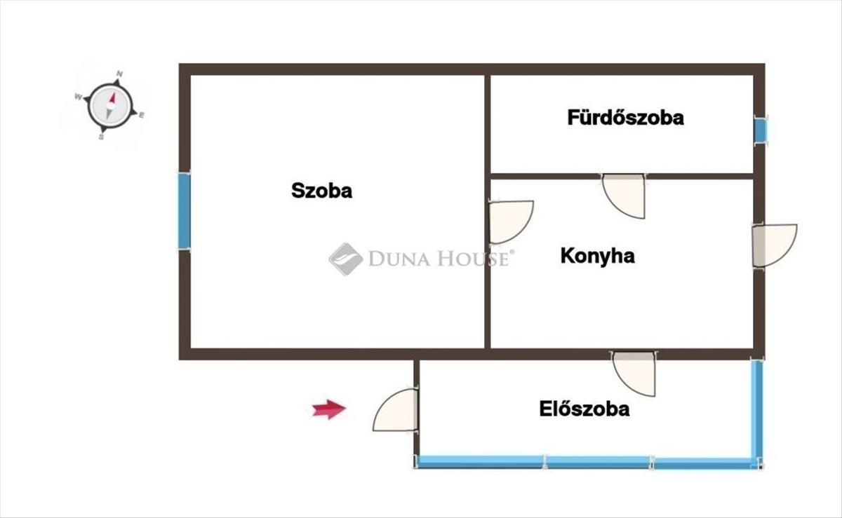 - 1 szoba, konyha, fürdőszoba, előszoba