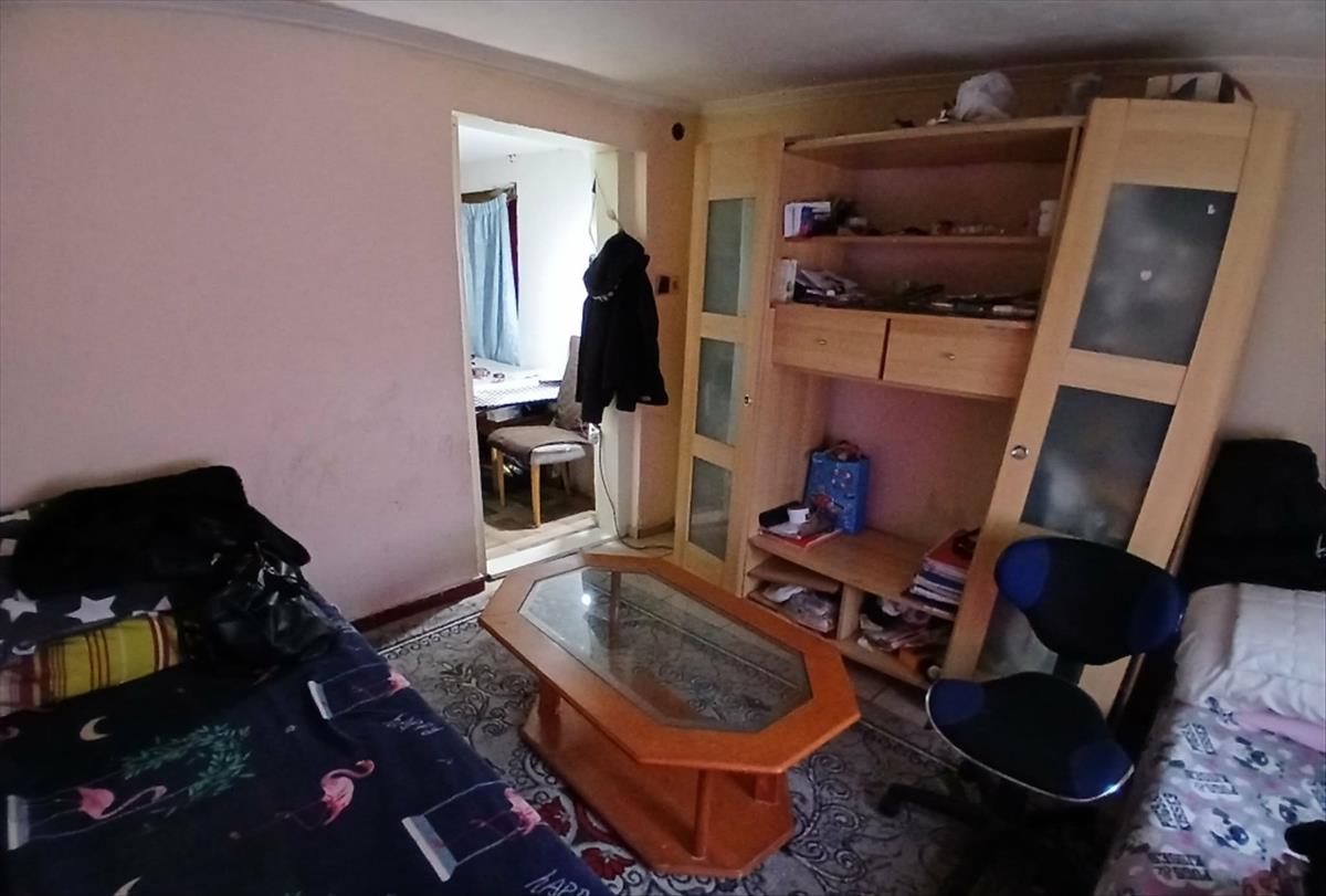 A külön bejáratú szoba padlózata beton. Szükség esetén egybenyitható a lakás többi részével.