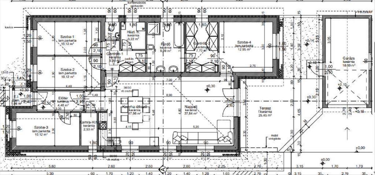 A fütésről és a melegvíz ellátásról gázkazán gondoskodik, illetve a klímákkal is lehet temperálni a házat akár télen akár nyáron. a korszerű szigeteléseknek köszönhetően igen alacsony rezsi költségre lehet számítani. a lakáson kívül is gondoltak a kényelemre, a nagy részben fedett terasz kellemes időtöltési hely lehet az egész család számára.